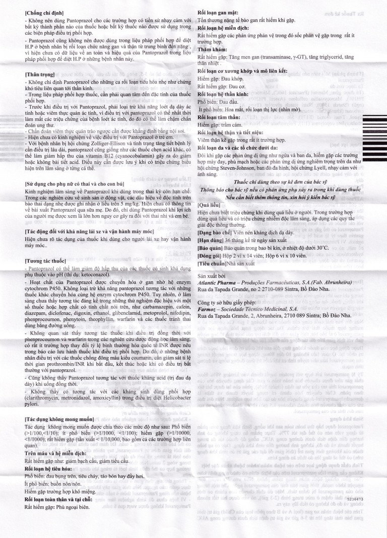 • Pantoprazol cũng không nên được dùng trong liệu pháp phối hợp để diệt H.P ở bệnh nhân bị rối loạn chức năng gan và thận từ trung bình đến nặng, vì hiện chưa có dữ liệu về an toàn và hiệu quả của pantoprazol trong liệu pháp phối hợp để diệt H.P ở những bệnh nhân này.