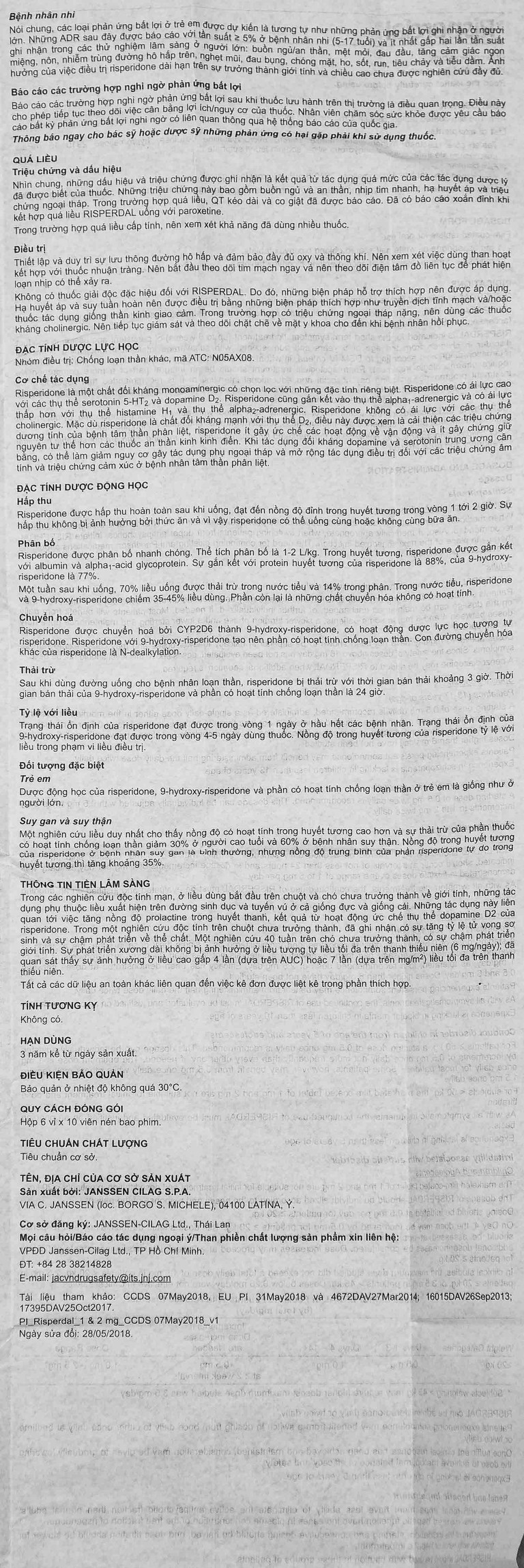 - Risperdal cũng được chỉ định điều trị các đợt hưng cảm cấp hoặc hỗn hợp liên quan đến rối loạn lưỡng cực I (theo tiêu chuẩn chẩn đoán DSM IV).