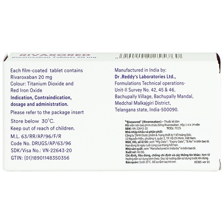 Thuốc Rivaxored 20mg Dr.Reddy’s phòng ngừa thuyên tắc huyết khối tĩnh mạch (1 vỉ x 14 viên)
