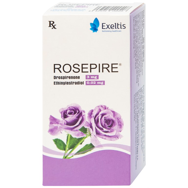 Thuốc Rosepire 3mg/0,02mg Exeltis tím dùng để tránh thai (1 vỉ x 28 viên)