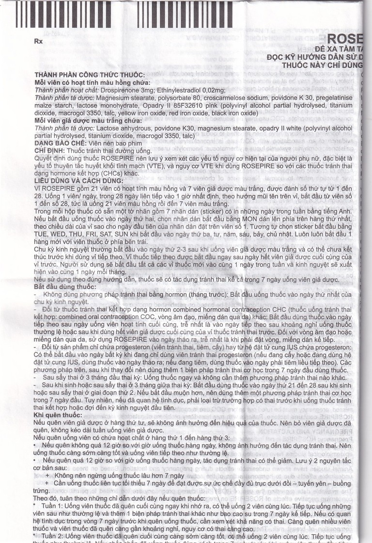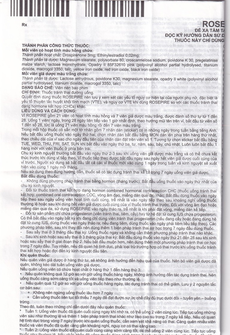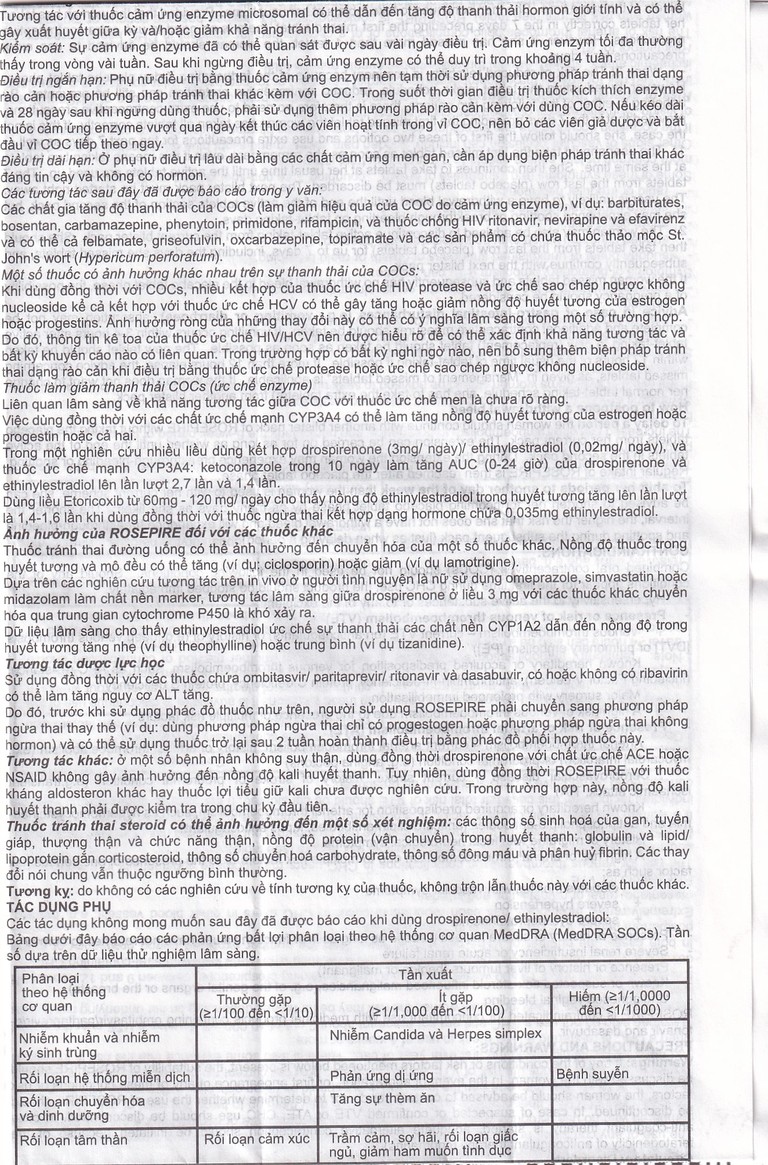 Cách dùng Thuốc Rosepire 3mg/002mg