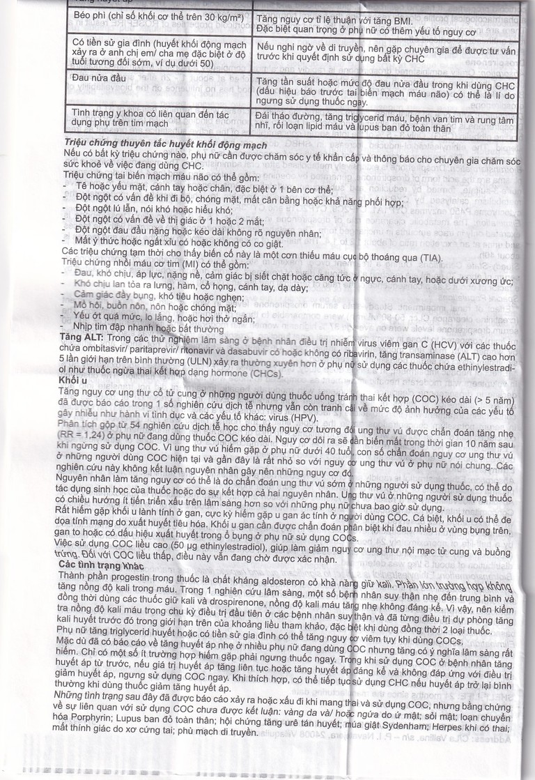 - Bỏ 7 viên giả dược và tiếp tục uống vỉ sau. Thời gian không có kinh nguyệt có thể kéo dài đến khi uống viên có hoạt tính cuối cùng của vỉ thuốc thứ 2. Trong thời gian này có thể thấy chảy máu nhẹ.