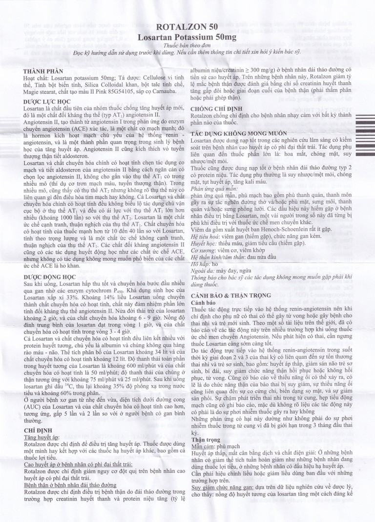 - Cao huyết áp ở bệnh nhân có phì đại thất trái: Rotalzon được chỉ định giảm nguy cơ đột quị trên bệnh nhân cao huyết áp có phì đại thất trái.