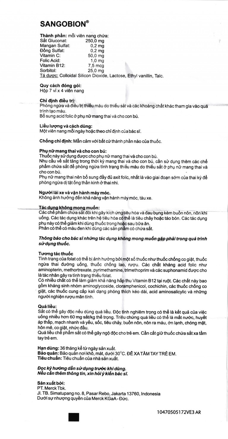 Công dụng của Thuốc Sangobion