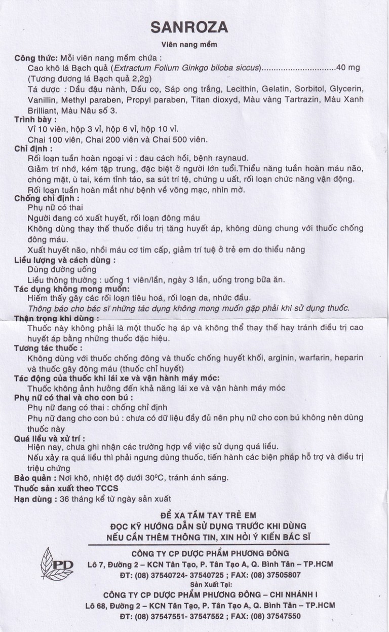 Thuốc Sanroza 40mg Phương Đông điều trị đau cách hồi, bệnh raynaud (10 vỉ x 10 viên)SẢN PHẨM