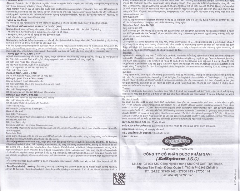 Công dụng của Thuốc Rosuvastatin 5