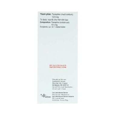 Tianeptine có thời gian bán thải ngắn khoảng 2 giờ 30 phút, bài tiết chủ yếu qua thận dưới dạng các chất chuyển hoá.