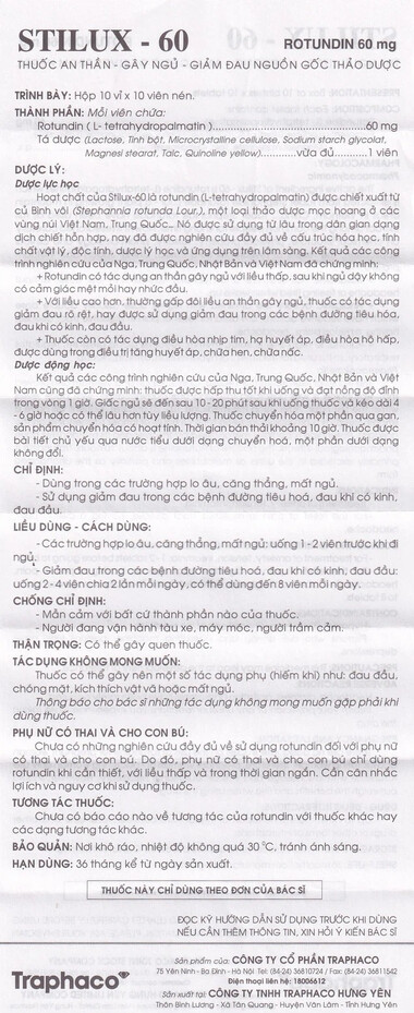 Mỗi viên chứa Rotundin ( L- tetrahydropalmatin ) 60mg