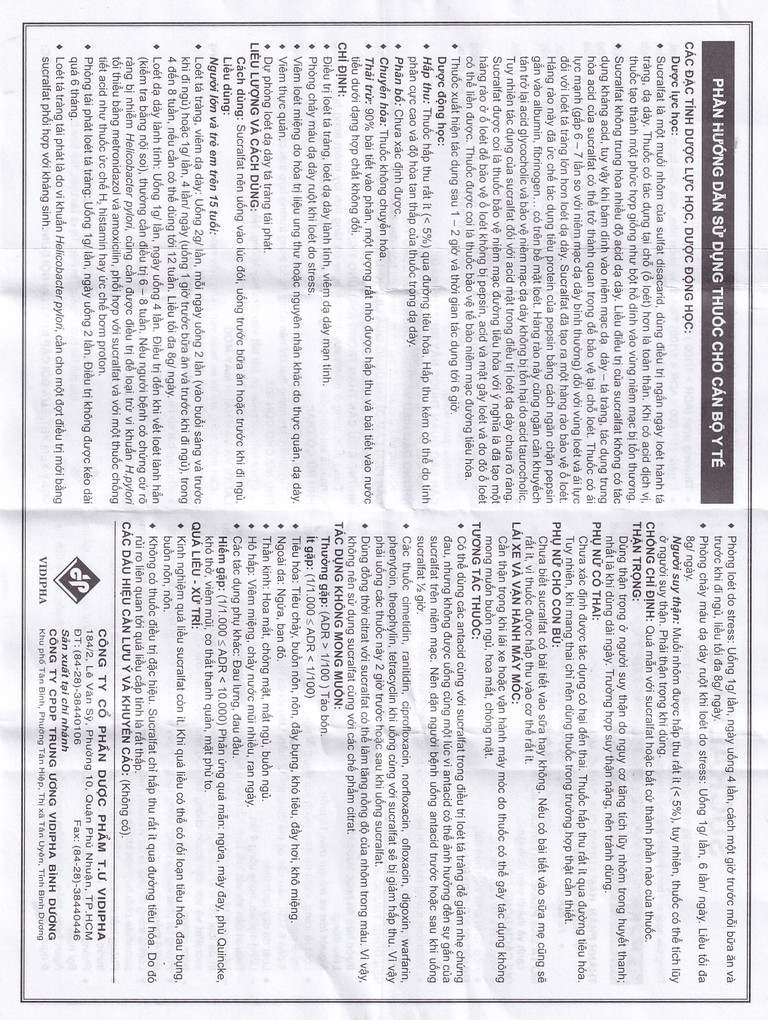 Khi sử dụng thuốc SUCRALFATE, bạn có thể gặp các tác dụng không mong muốn (ADR).