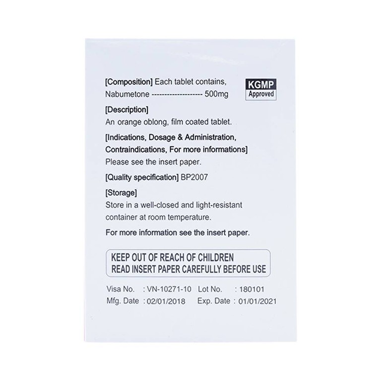 • Bệnh nhân có tiền sử mẫn cảm với Nabumetone hay bất cứ thành phần nào của thuốc.