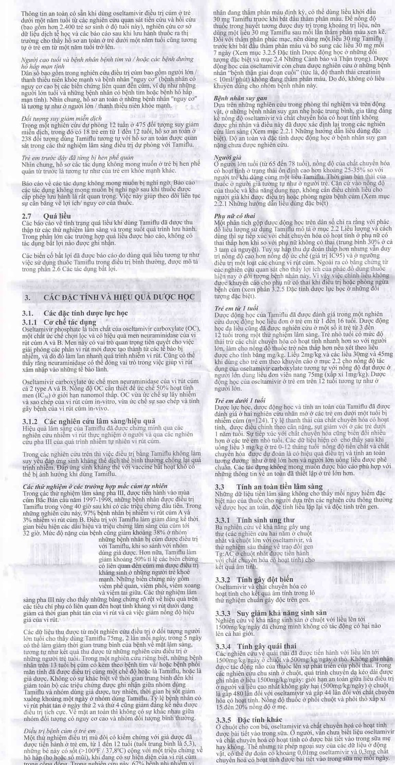 Bệnh nhân cao tuổi: Không cần điều chỉnh liều cho người già khi được điều trị hoặc phòng ngừa bệnh cúm.