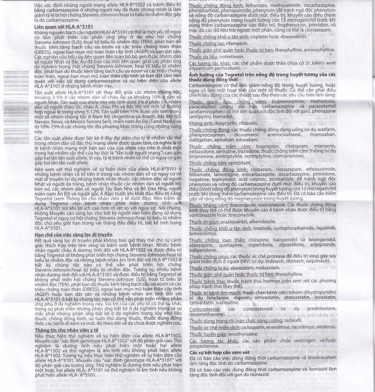 Chống chỉ định sử dụng Tegretol kết hợp với thuốc ức chế monoamine-oxidase (MAOI). Trước khi dùng Tegretol, phải ngừng thuốc ức chế MAO trong ít nhất 2 tuần hoặc lâu hơn nếu tình trạng lâm sàng cho phép.