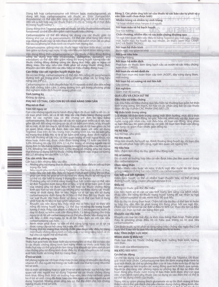 Đã có một vài trường hợp co giật ở trẻ sơ sinh và/hoặc suy hô hấp liên quan với việc người mẹ sử dụng Tegretol và các thuốc chống động kinh khác đồng thời. Một vài trường hợp nôn, tiêu chảy và/hoặc giảm bú ở trẻ sơ sinh cũng đã được báo cáo liên quan với việc người mẹ sử dụng Tegretol. Những phản ứng này có thể đại diện cho hội chứng ngưng thuốc ở trẻ sơ sinh.
