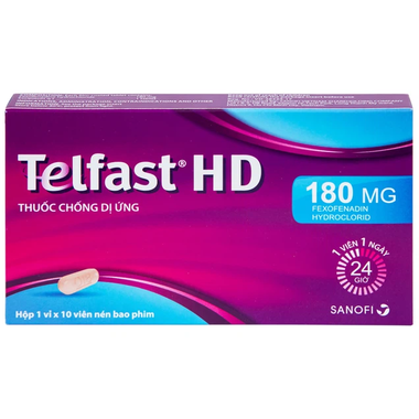 Thuốc Telfast HD 180mg hỗ trợ điều trị viêm mũi dị ứng, mày đay (1 vỉ x 10 viên)