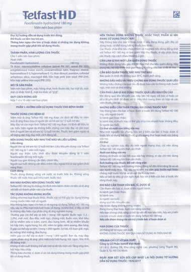 Thông tin thành phần: Fexofenadine 180mg