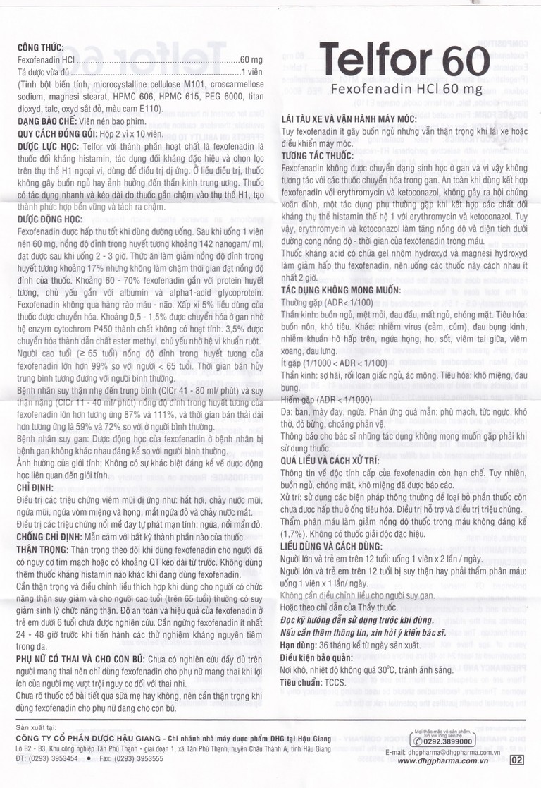 Trước khi sử dụng thuốc Telfor 60 bạn cần đọc kỹ hướng dẫn sử dụng và tham khảo thông tin bên dưới.