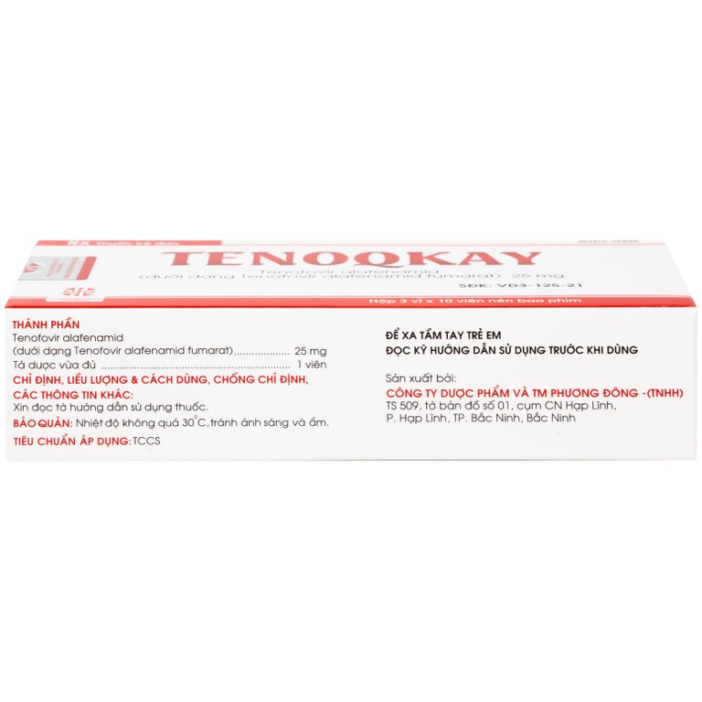 Thuốc Tenoqkay 25mg Phương Đông điều trị bệnh viêm gan siêu vi B mạn tính (3 vỉ x 10 viên)