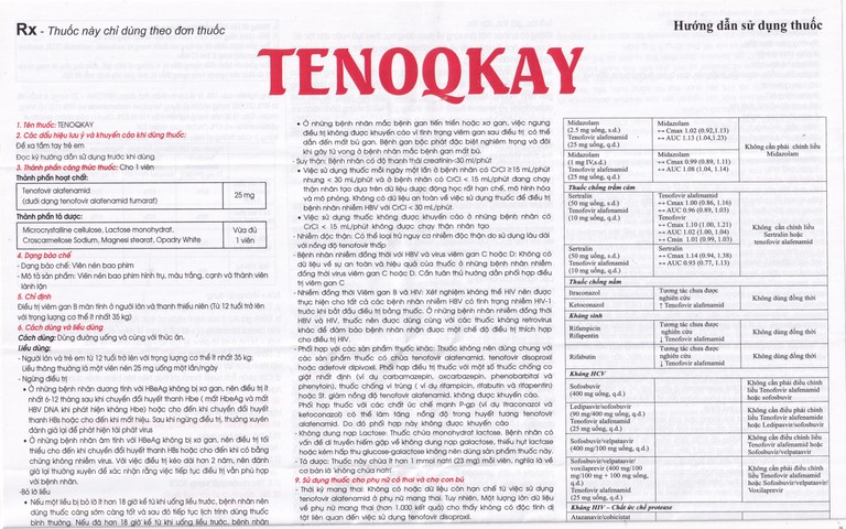 Suy gan: Không cần điều chỉnh liều Tenoqkay ở bệnh nhân suy gan.