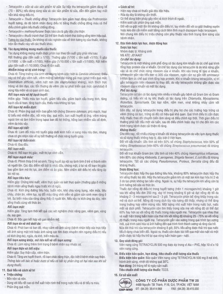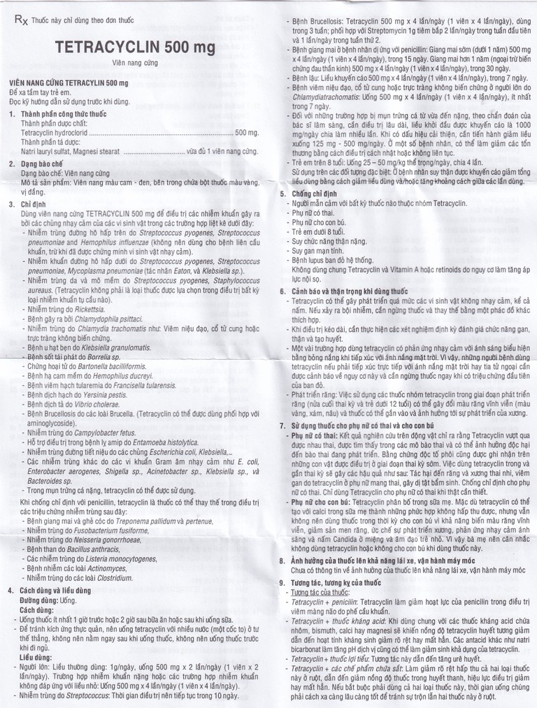 - Tetracyclin 500 mg X 4 lần/ngày (1 viên X 4 lần/ngày), dùng trong 3 tuần.