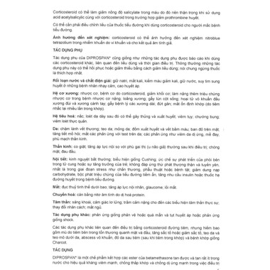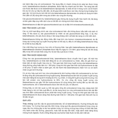 Các dẫn chất tổng hợp của hormon vỏ thượng thận, bao gồm betamethasone dipropionate và betamethasone disodium phosphate, được hấp thu nhanh tại vị trí tiêm, mang lại hiệu quả điều trị tại chỗ và toàn thân, cùng những tác dụng dược lý đặc trưng của nhóm corticosteroid.