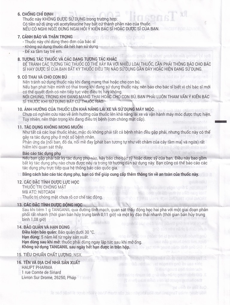 Cách dùng Thuốc tiêm Tanganil 500mg/5ml