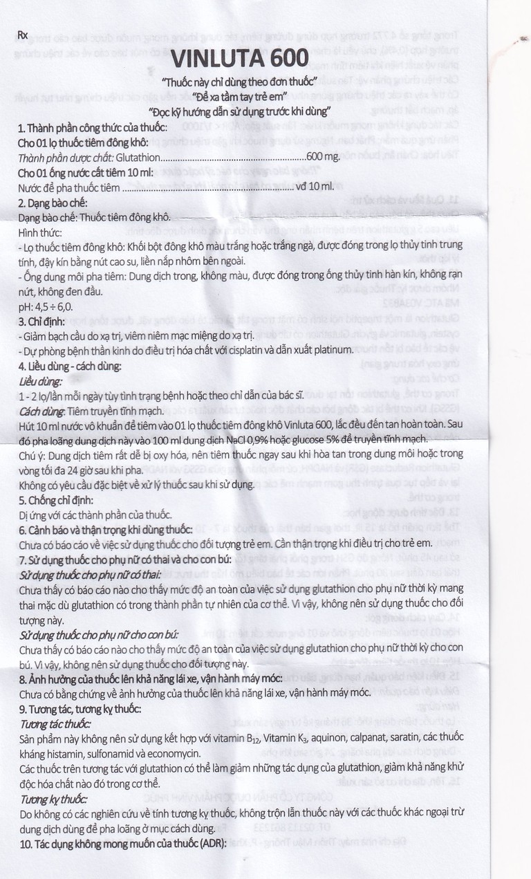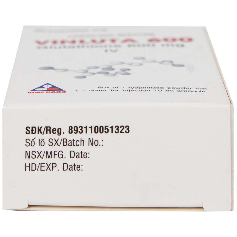 Thuốc tiêm Vinluta 600 Vinphaco giảm độc tính của xạ trị và hóa chất điều trị ung thư (1 lọ bột + 1 ống nước cất tiêm 10ml)