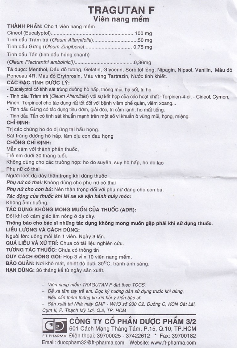 Thuốc Tragutan F Dược 3-2 điều trị các chứng ho, sát trùng đường hô hấp (3 vỉ x 10 viên)SẢN PHẨM