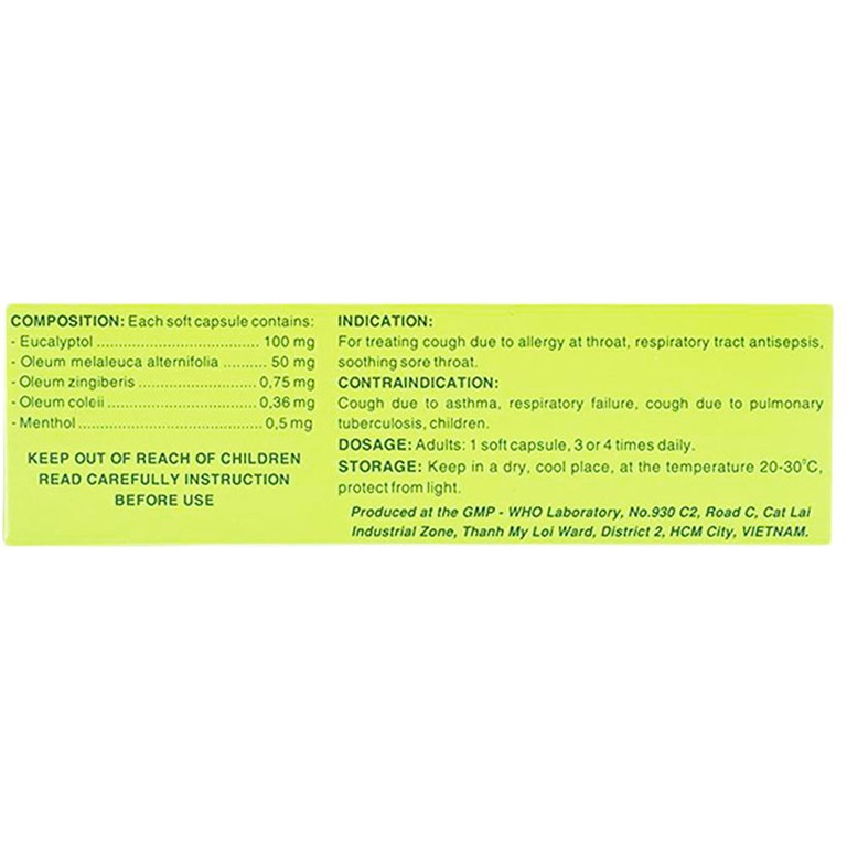 - Không dùng cho các trường hợp: Ho do suyễn, suy hô hấp, ho do lao.