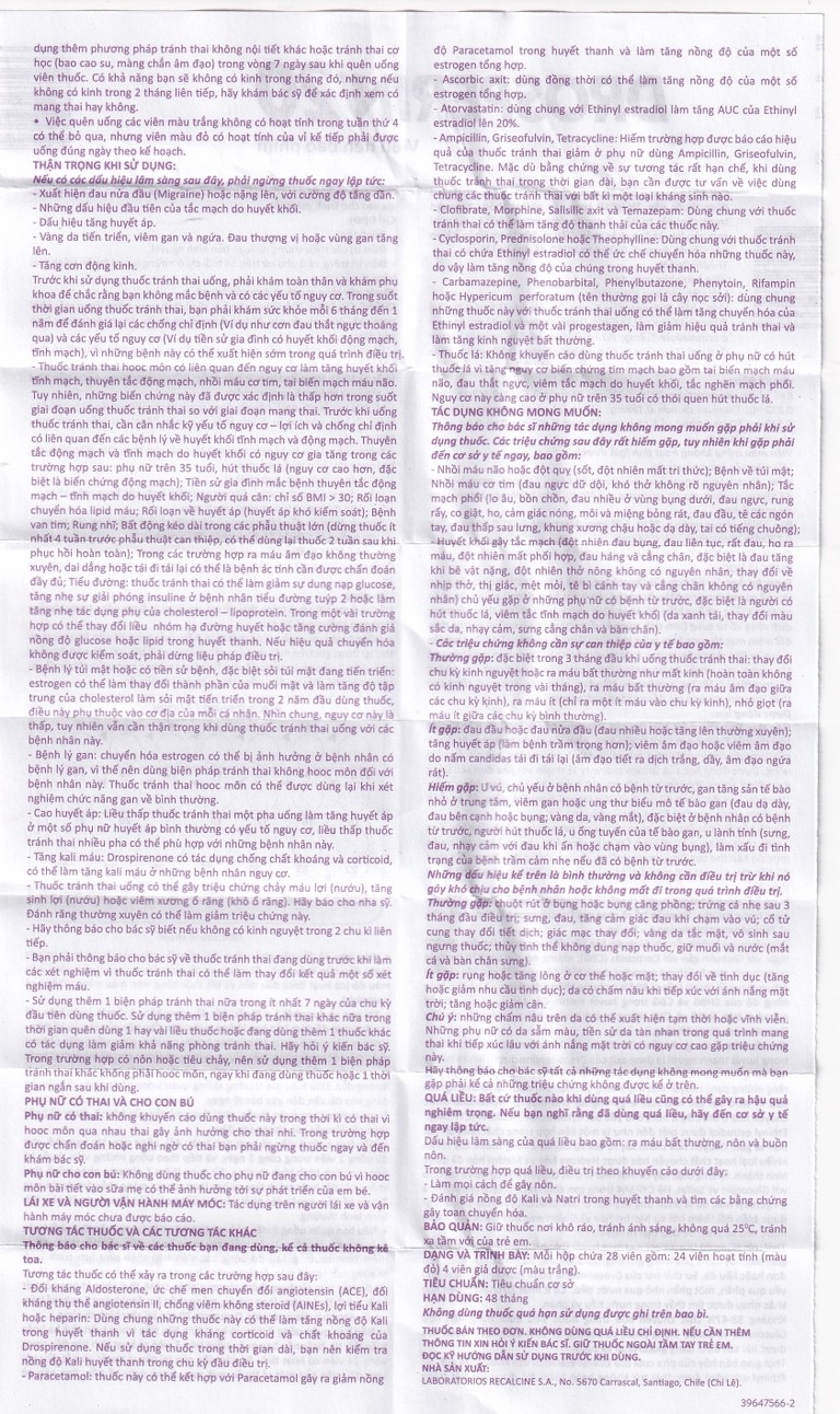 Các tác dụng của ethinyl estradiol trên SHBG và CBG không bị ảnh hưởng bởi sự biến đổi của liều drospirenone trong khoảng 2 – 3 mg.