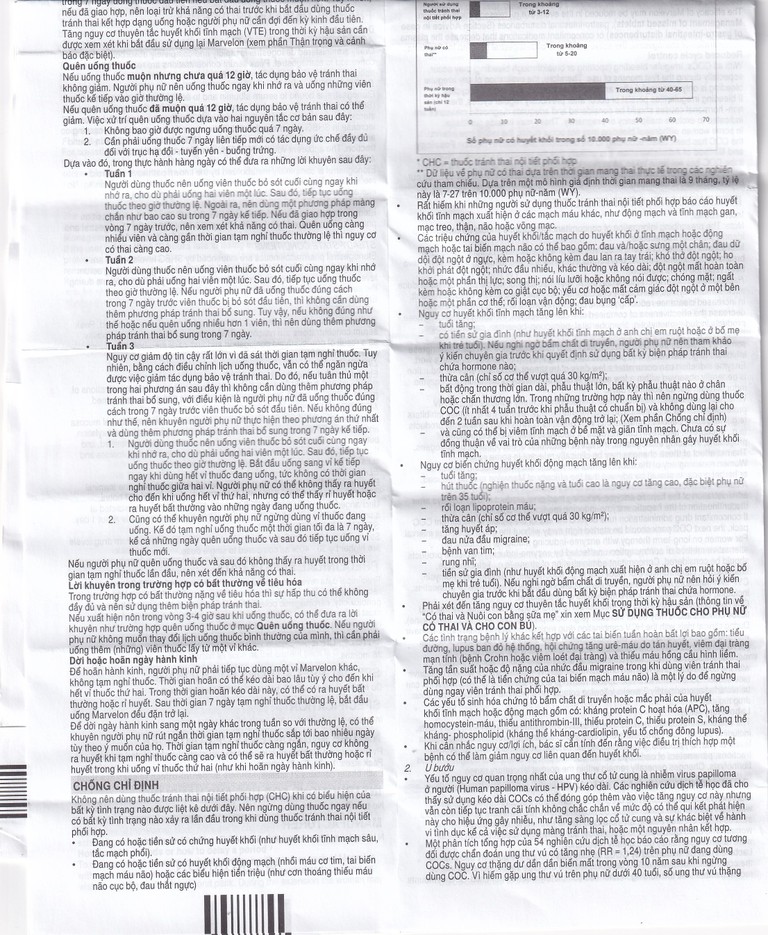 Tăng nguy cơ thuyên tắc huyết khối tĩnh mạch (VTE) trong thời kỳ hậu sản cần được xem xét khi bắt đầu sử dụng lại Marvelon.