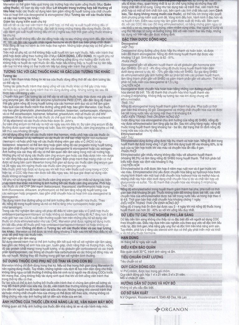 • Marvelon chứa ít hơn 80 mg lactose trong mỗi viên thuốc. Cần lưu ý ở những bệnh nhân với bệnh di truyền hiếm gặp không dung nạp galactose, thiếu hụt Lapp lactase hoặc kém hấp thu glucose-galactose, người đang ăn kiêng lactose. Khi tư vấn lựa chọn biện pháp tránh thai thì nên cân nhắc đến tất cả các thông tin nêu trên.
