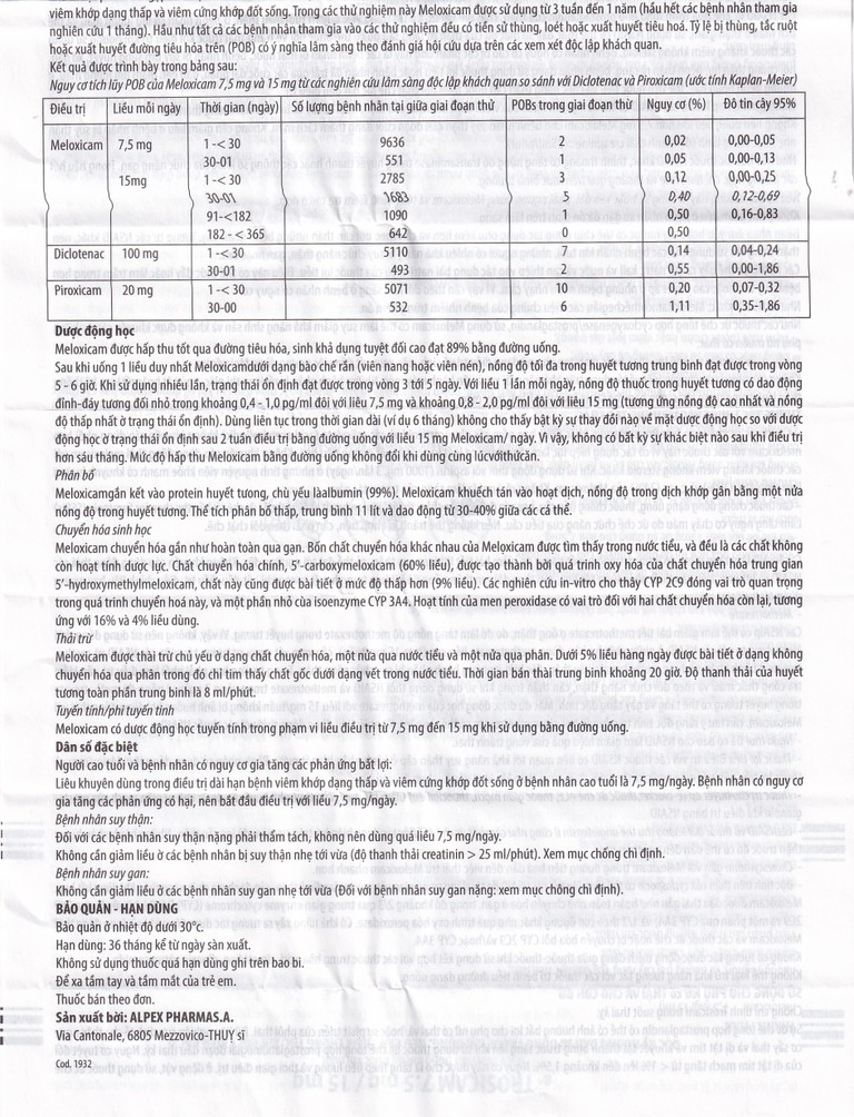 Cách dùng Thuốc Trosicam 7.5mg
