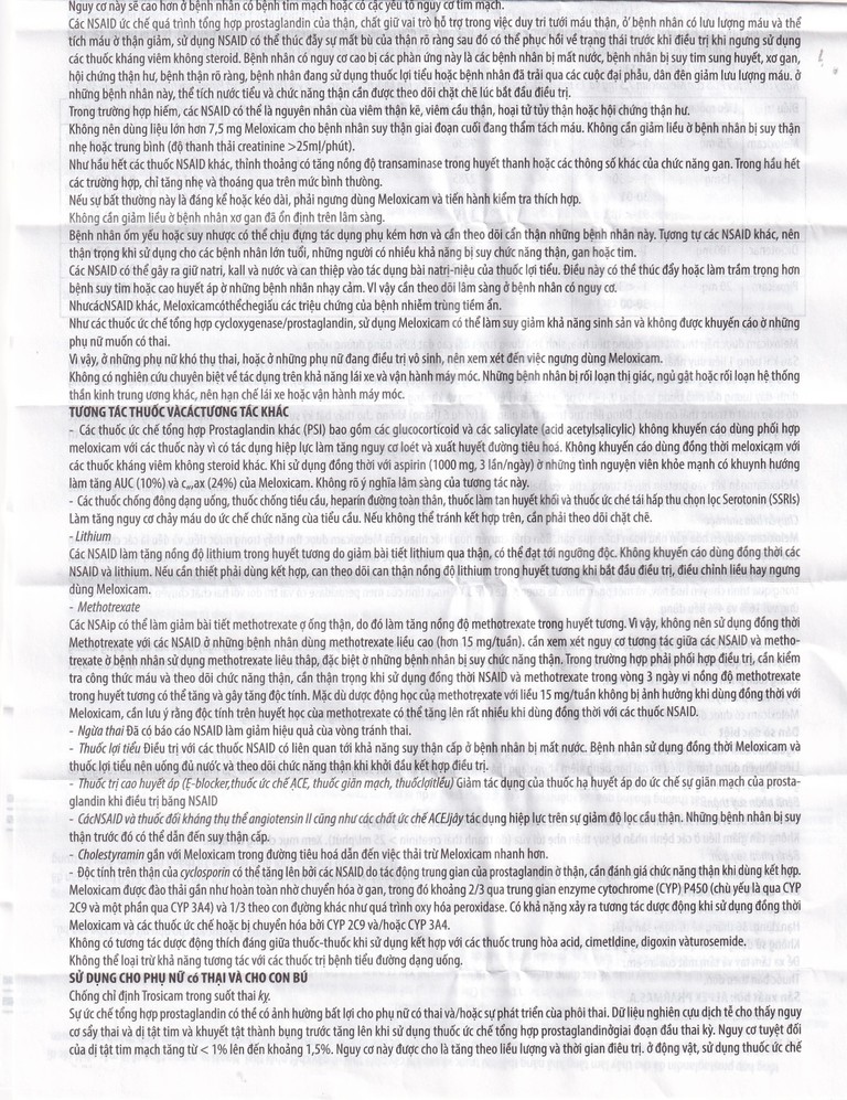 Khi sử dụng thuốc Trosicam, bạn có thể gặp các tác dụng không mong muốn (ADR).