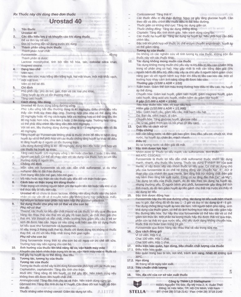 Thuốc Urostad 40 Stella điều trị phù phổi cấp (5 vỉ x 10 viên)