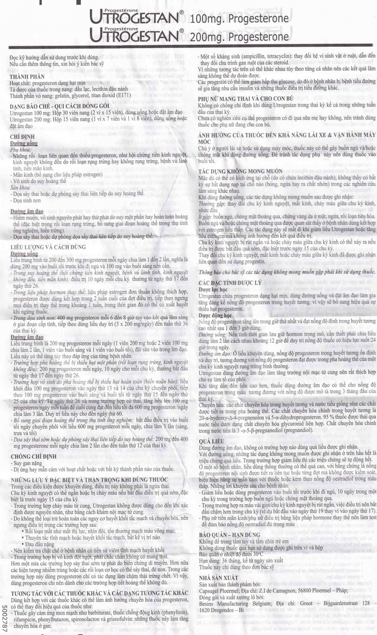 Thuốc Utrogestan 200mg dùng đường uống hoặc đặt âm đạo.