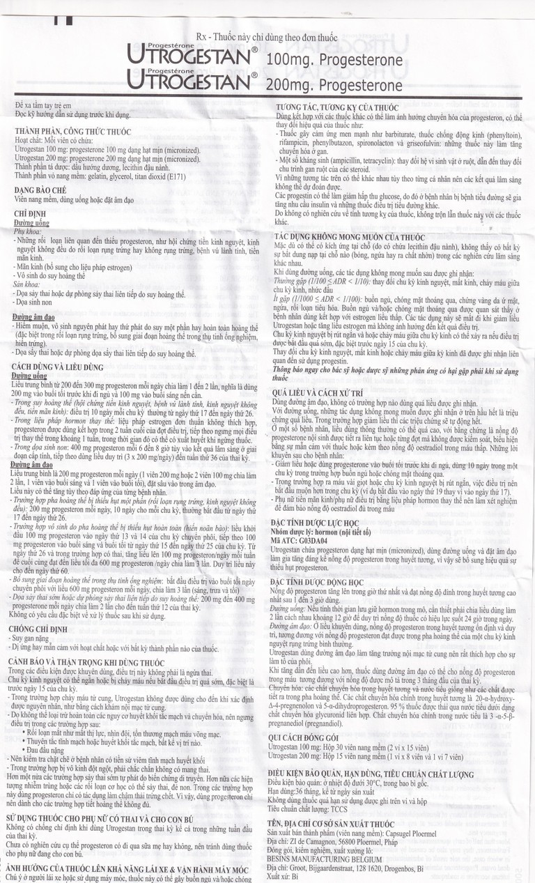 Công dụng của Thuốc Utrogestan 200mg