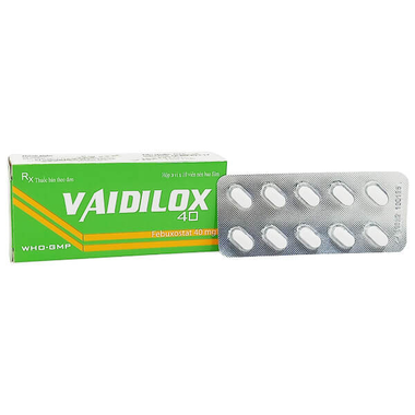 Thuốc Vaidilox 40 mg hỗ trợ điều trị gout, tăng acid uric huyết (Hộp 3 vỉ x 10 viên)