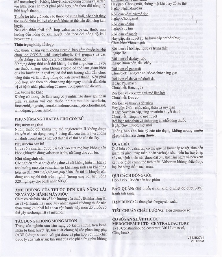 Thuốc Vasblock 80mg Medochemie điều trị tăng huyết áp, suy tim (3 vỉ x 10 viên)