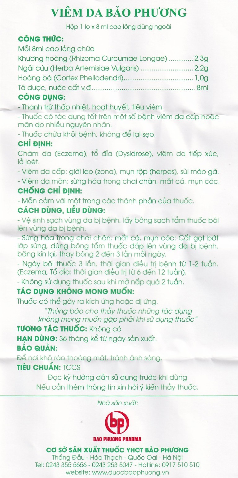 Công dụng của Thuốc Viêm Da Bảo Phương