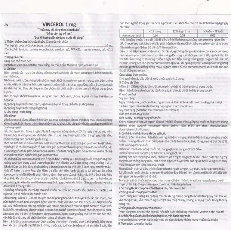 Thuốc Vincerol 1mg Vinphaco dùng trong bệnh tim gây tắc mạch, nhồi máu cơ tim (10 vỉ x 10 viên)