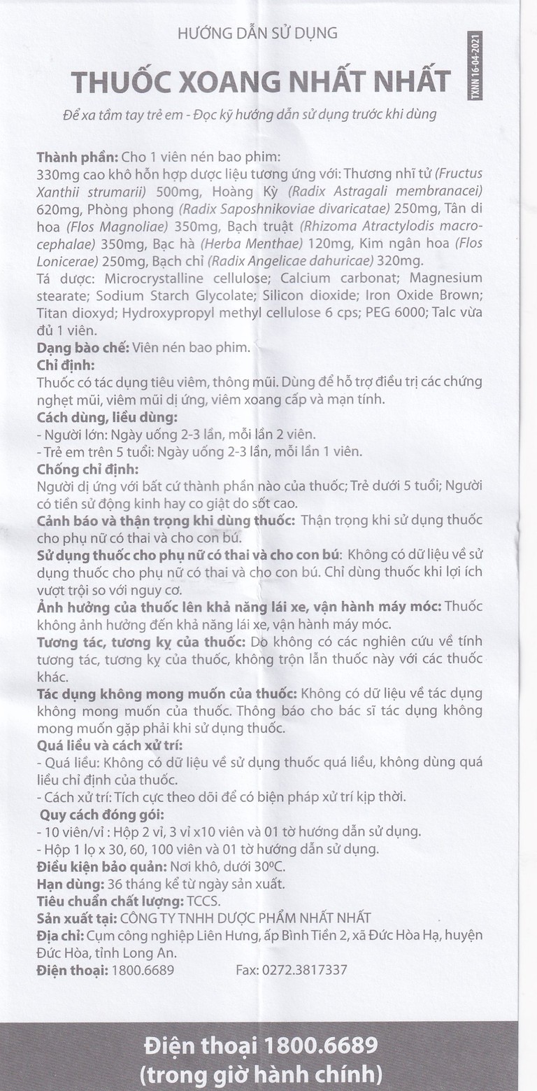 Công dụng của Thuốc Xoang Nhất Nhất