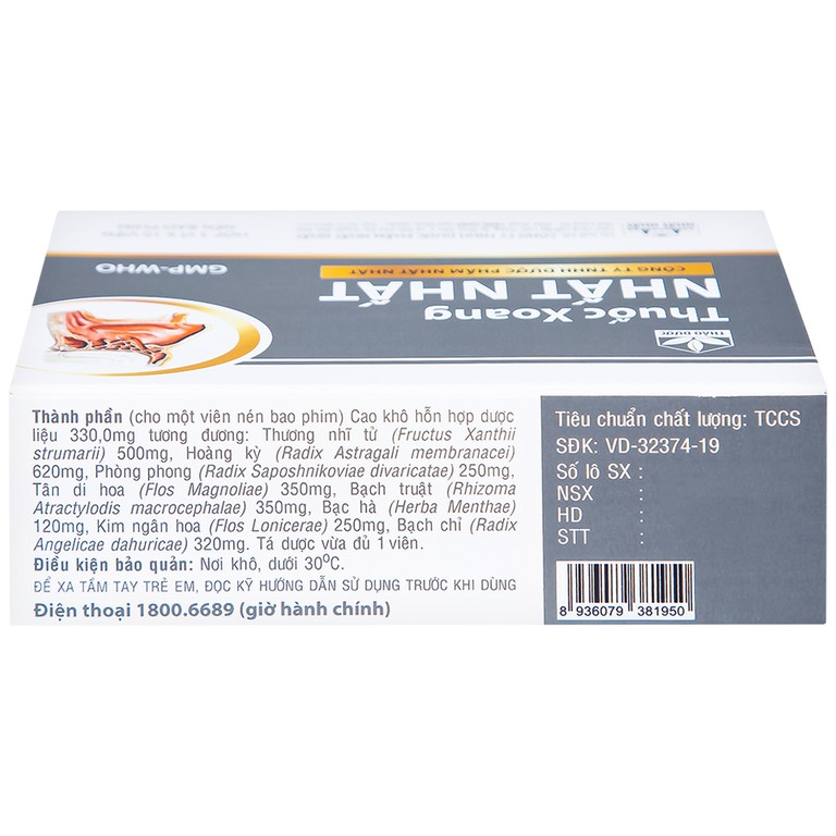 Thuốc Xoang Nhất Nhất điều trị nghẹt mũi, viêm mũi dị ứng, viêm xoang cấp (3 vỉ x 10 viên)SẢN PHẨM