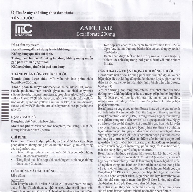 Thuốc Zafular Medochemie điều trị tăng triglyceride máu, tăng lipid máu hỗn hợp (5 vỉ x 10 viên)