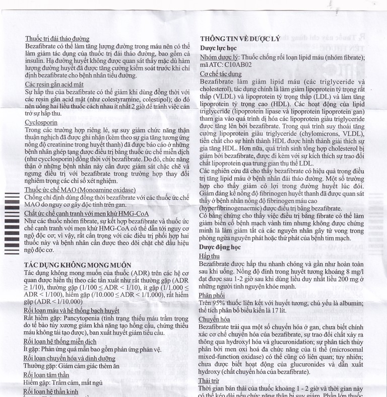 • Quá mẫn với bezafibrat, các thuốc nhóm fibrat khác và bất kỳ tá dược nào có trong thành phần của thuốc.