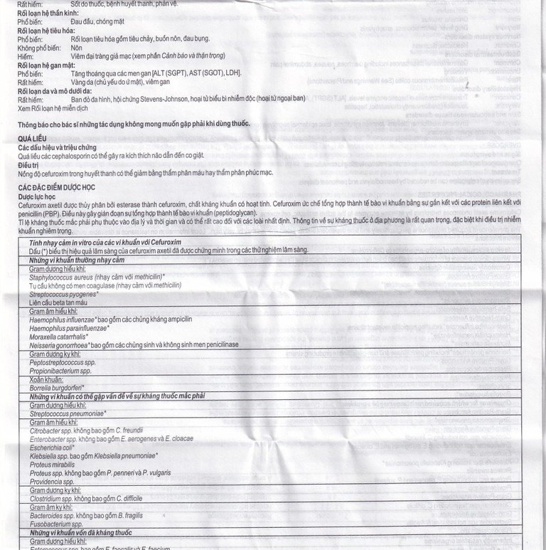 Dấu (*) biểu thị hiệu quả lâm sàng của cefuroxim axetil đã được chứng minh trong các thử nghiệm lâm sàng.