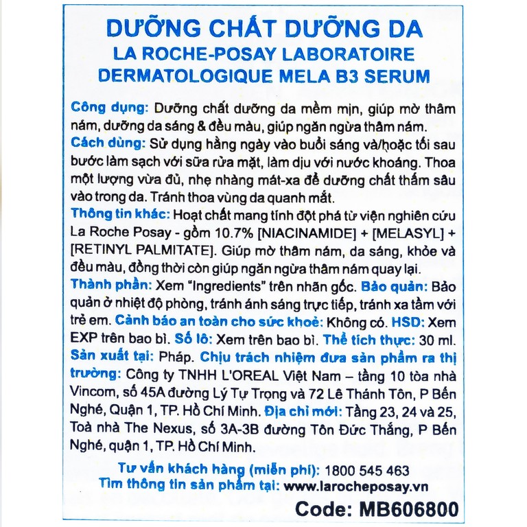 Thành phần của Tinh chất La Roche-Posay Mela B3 Serum
