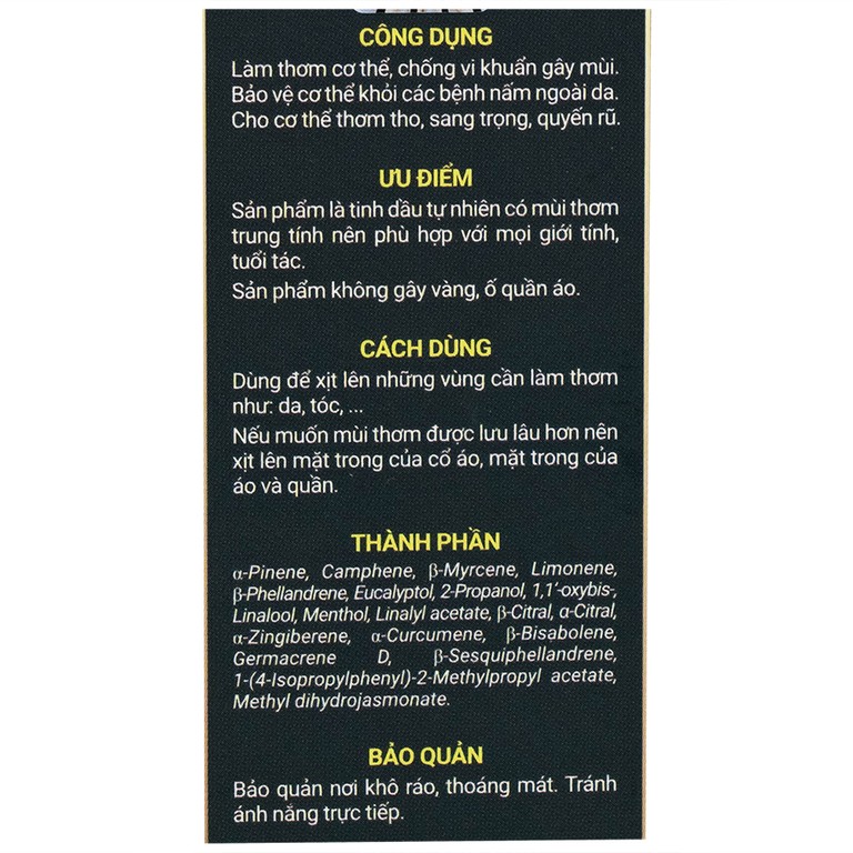 Dùng để xịt lên những vùng cần làm thơm như: Da, tóc,…