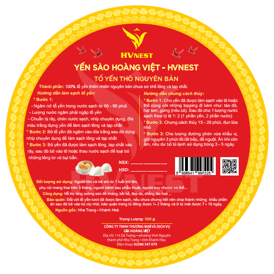 Thành phần: 100% tổ yến thiên nhiên nguyên bản chưa sơ chế lông và tạp chất.