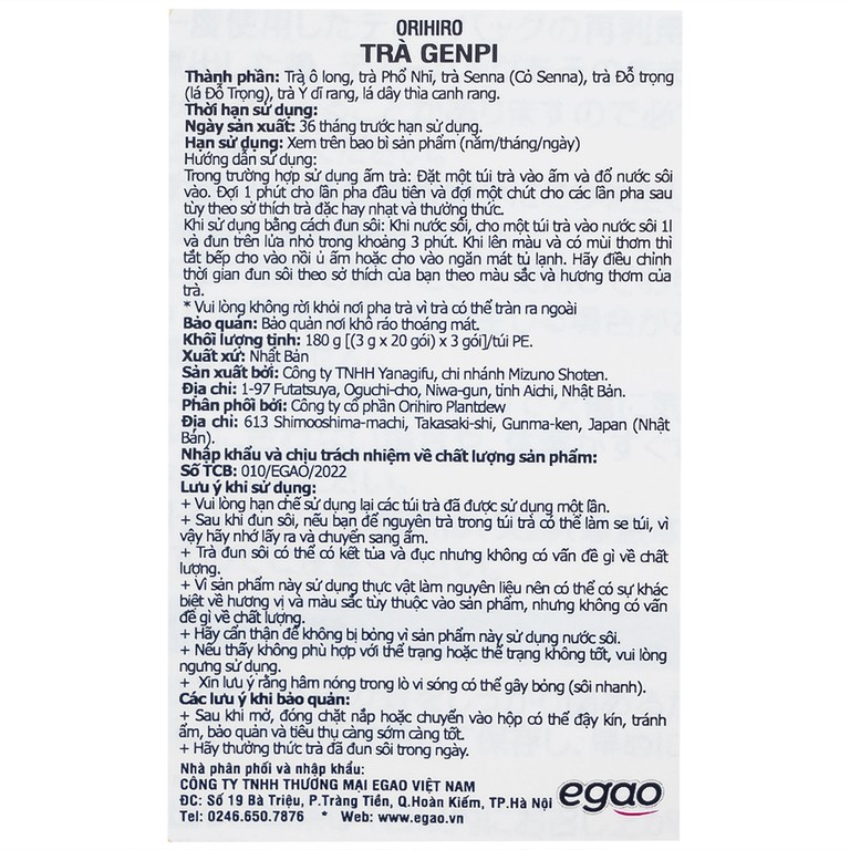 Trà Genpi Orihiro (60 túi lọc x 3g)Trà Genpi Orihiro (60 túi lọc x 3g)