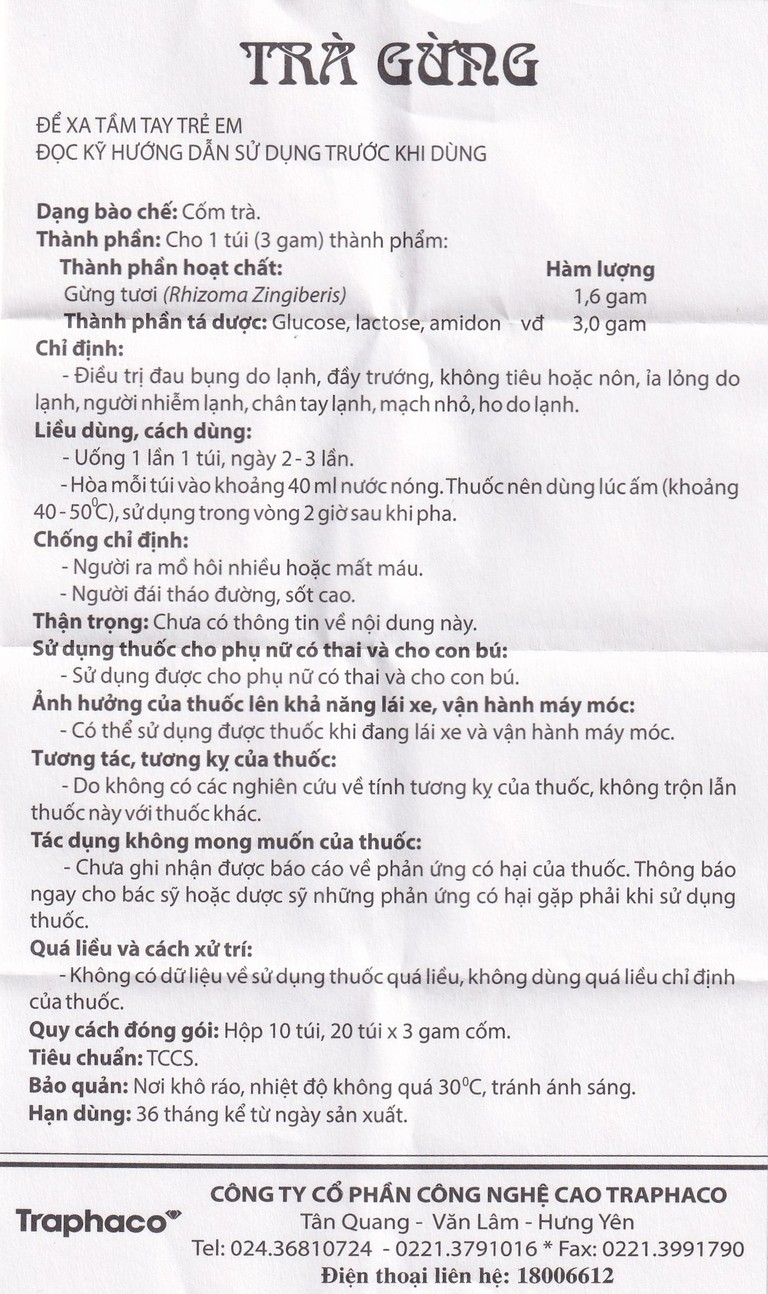 Trà Gừng Traphaco điều trị đau bụng do lạnh, đầy trướng, không tiêu (10 gói x 3g)SẢN PHẨM